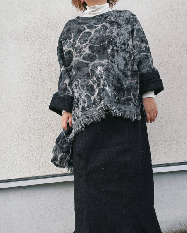 播州織のウールコットン生地でプルオーバーとターバンのセットを作りました。 もこもこでとっても暖かい スカートでもパンツでも さっぱり包み込んで暖かさをいただけるセットです。 丈身幅共に大きめですが オチ感があるので 着膨れの心配はありません。 逆に体型カバーにぴったりのデザインになってます プルオーバー 身幅約75センチ 着丈約65センチ フランジ部分を除く ターバン 幅 太いところで17センチ 頭の周り約42センチ ゴムなのでそこから伸びます 素材 プルオーバー ターバン共にコットンウール