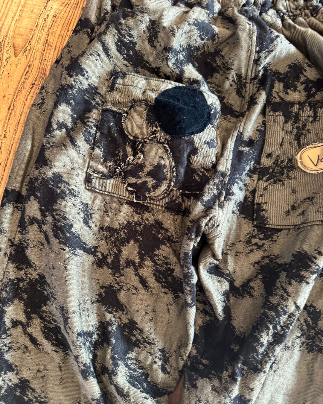 とってもゆとりのあるダブダブシルエットのパンツ 後ろポケットの刺繍がポイントのパンツです。 播州織のコットン100%生地 柔らかくて履き心地抜群です。 シルエットが最高なのでぜひチャレンジして見てください ダブダブ好きならお気に入り間違いなし ウエストからの長さ 約90センチ お腹周り 広くして130センチ ウエスト ゴムの部分70センチ ここから伸びます