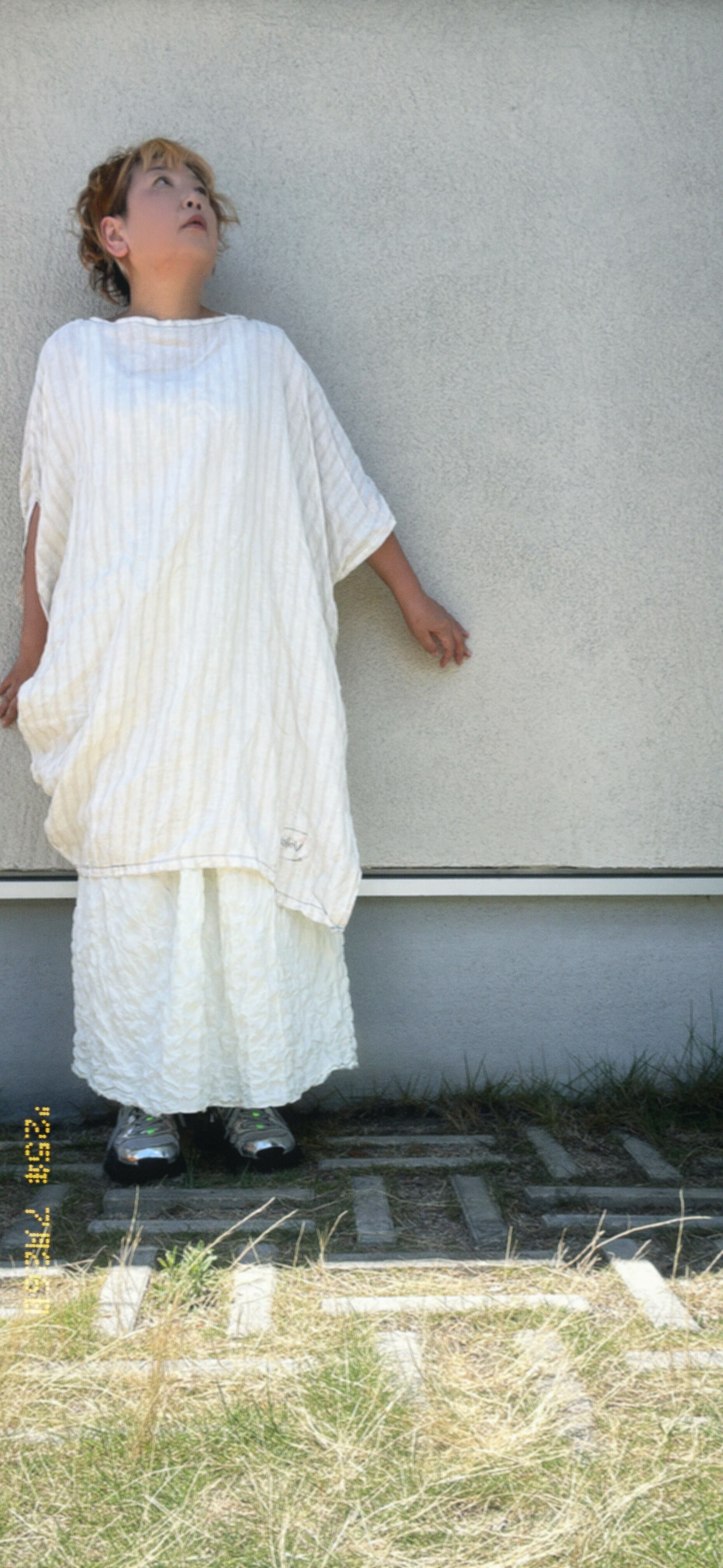 リネン100%のアシンメトリーなスタイルのワンピース