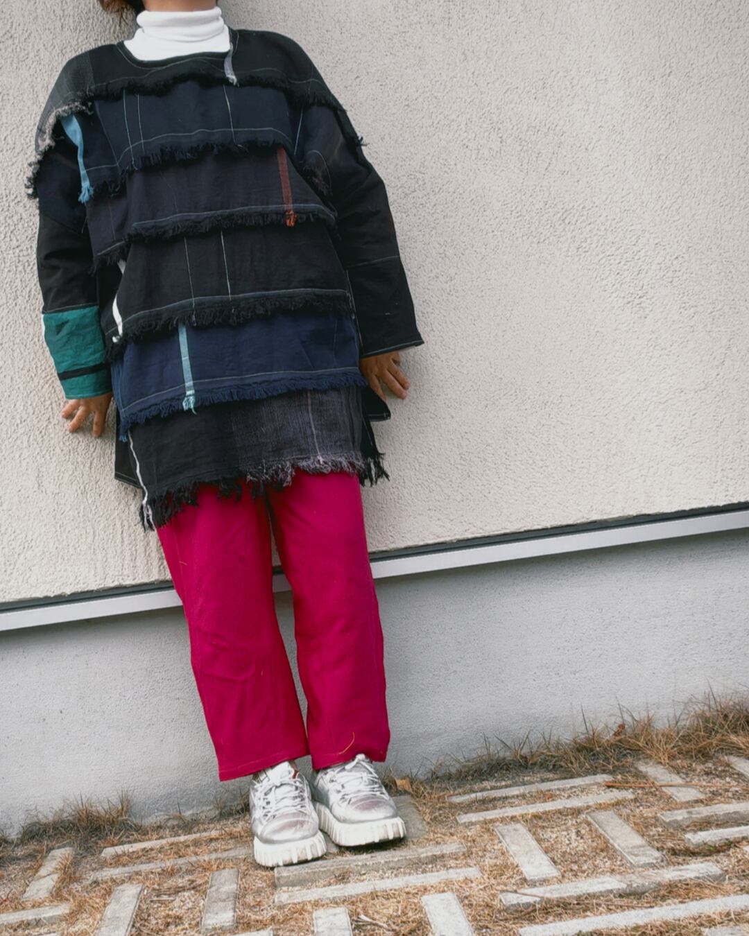 前後どちらでも着られるので一着で気分を変えた着こなしが楽しめます。