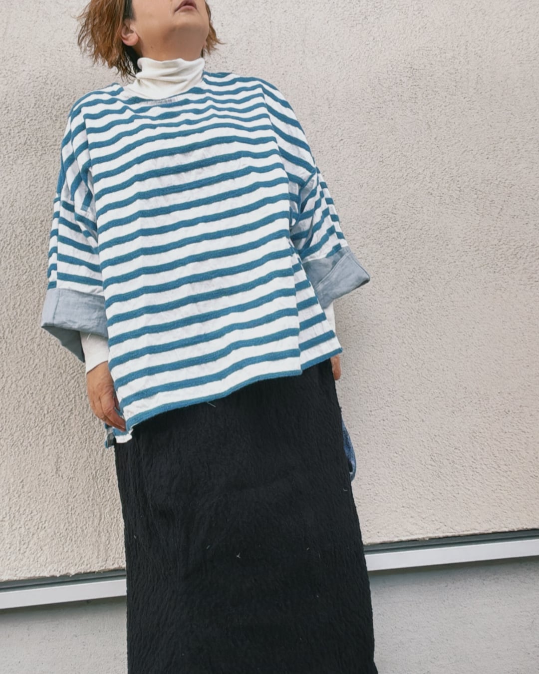 素材 プルオーバー コットン ボーダー部分ウール 袖部分リネン