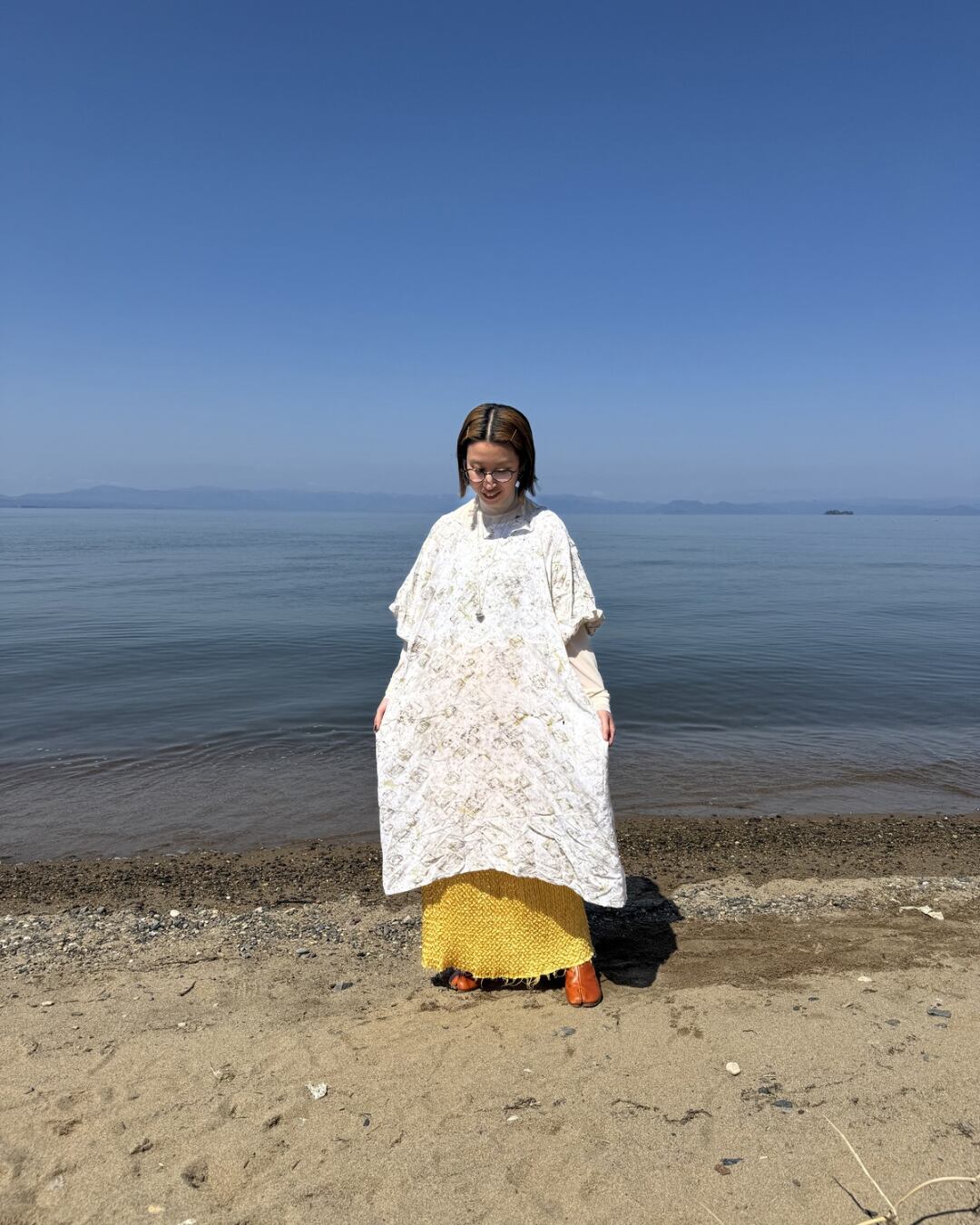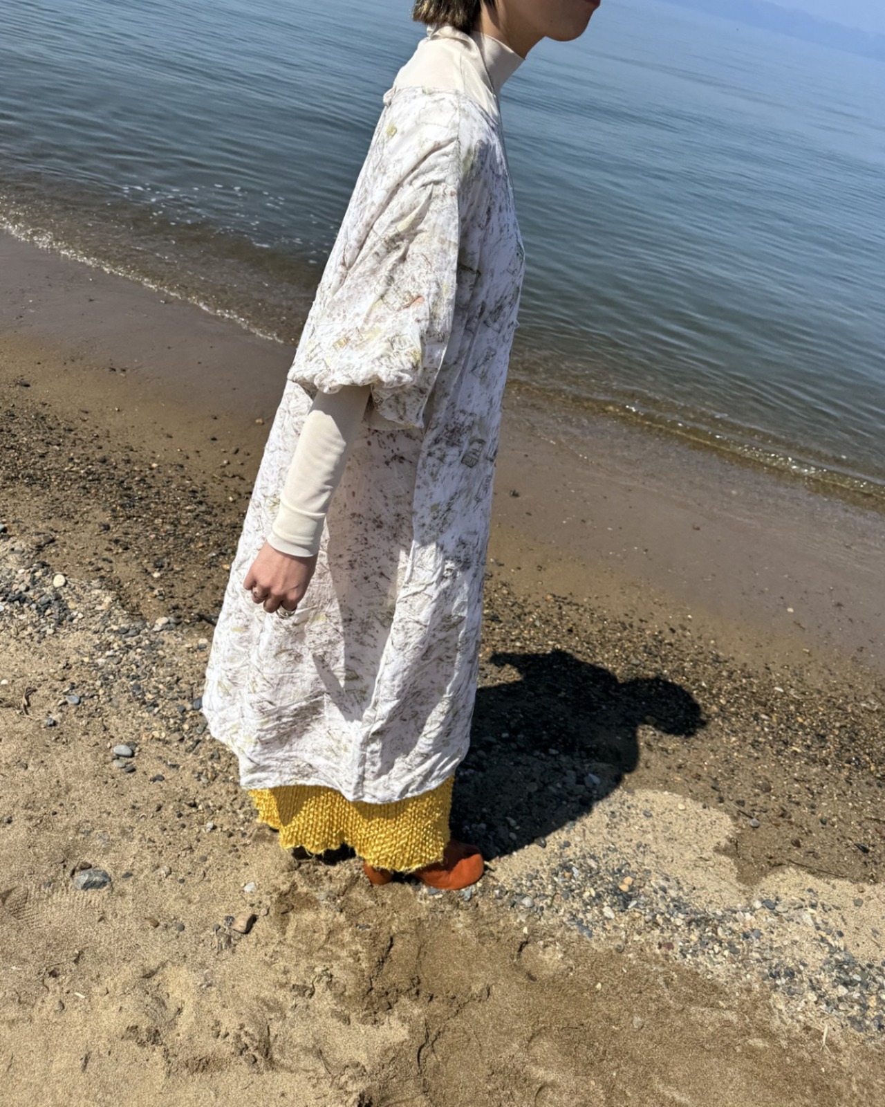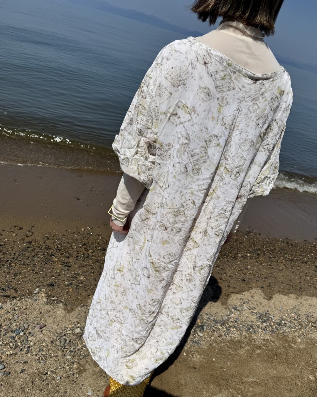 ミモザの記憶 草木染めリネンレーヨンワンピース(一点もの)